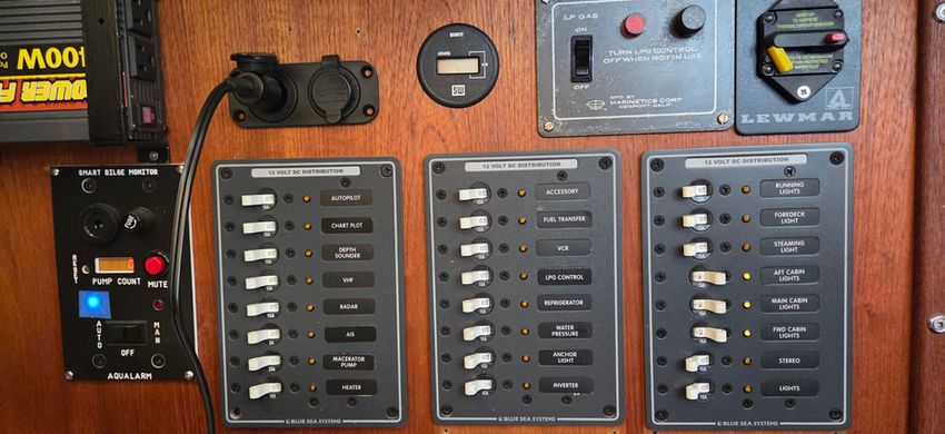 • 12V outlets and USB (at chart table, binnacle, V-berth)